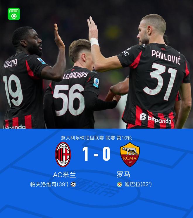 北京时间11月3日,意大利高级足球联赛第10轮比赛,AC米兰主场迎战罗马。上半场,莱奥助攻帕夫洛维奇破门,打破场上平局。福法纳错过了提高得分的机会。下半场,莫德里奇开出角球,恩昆库击中立柱。恩昆库的手球导致迪巴拉主罚点球,但迈尼昂停了下来。最终,AC米兰主场1-0击败罗马。决战第39分钟,莱奥传球形成倒三角,巴甫洛维奇快速破门。米兰1-0罗马。第82分钟,福法纳手球。迪巴拉主罚点球,但被迈尼昂扑出。两队的球员都进入了房间。比赛开始后,全场为两队主教练加莱奥内默哀。第1分钟,门扬分球不远,艾纳维传中,克里斯坦特的射门稍稍偏出。第7分钟,米兰一脚高射丢球,当艾纳维远射时,迈尼昂没收了球。第10分钟,恩迪卡接苏莱传球头球攻门,皮球稍稍偏出球门。第17分钟,切利克传球,迪巴拉停球立即射门。不幸的是,第32分钟,韦斯利回传,迪巴拉追入球门,将球直接送入看台。第34分钟,艾纳维拉放倒瑟尔·默克斯,主裁判向他出示黄牌。第39分钟,莱奥三个角球传球,帕夫洛维奇单刀破门,米兰1-0罗马。第45分钟,莱奥首开纪录,巴尔特萨吉传中,福法纳推射偏出。第46分钟,里奇高出球门,但皮球稍稍偏出。第49分钟,萨尔马克斯分球,莱奥斜射,但球被斯维拉尔扑出。第50分钟,莫德里奇前场开出角球,皮球击中恩昆库后击中立柱。在第63分钟,迪巴拉传球,佩莱格里尼低射被梅格南倒地扑出。第68分钟,门前爆发混乱。里奇的射门被斯维拉尔扑出,莱奥随后的射门在底线附近被挡出。第75分钟,韦斯利从背后踢倒萨尔·默克斯,裁判向他出示黄牌。塞里克击倒了里奥,裁判给了他一张黄牌。第82分钟,福法纳解围,迪巴拉主罚点球,但梅格南扑出。