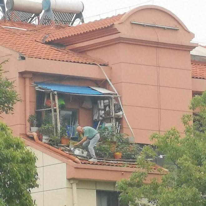 江苏的年轻人分享道:“老人在屋顶上种花。”